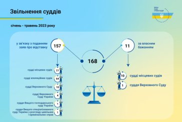 Протягом січня - травня 2023 року Вища рада правосуддя прийняла рішення щодо звільнення 168 суддів з посад за загальними обставинами.