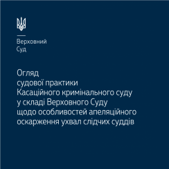 Пропонуємо ознайомитися з тематичним оглядом судової практики, у якому відображено правові позиції та висновки щодо особливостей оскарження ухвал слідчих суддів в апеляційному порядку, що містяться в постановах Касаційного кримінального суду у складі Верховного Суду – https://is.gd/kmNCGU.