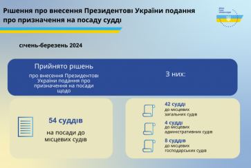 Упродовж січня - березня 2024 року ВРП вирішила внести Президентові України подання про призначення 54 суддів